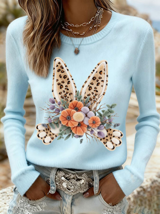 Women's Cute Bunny Patchwork Pattern T-Shirt