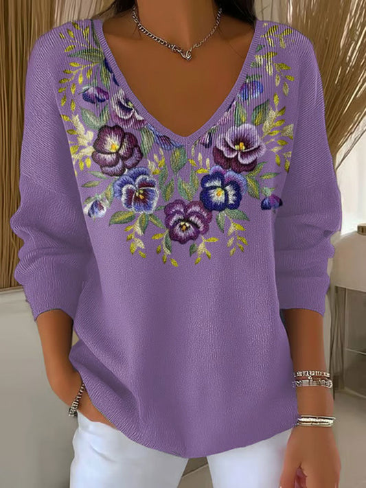 Women's Casual Purple Floral Art Loose Shirt