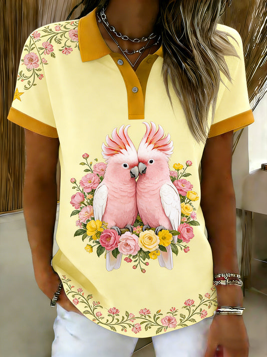 • Women's  Vintage Australian Kangaroo Art Printed Casual Cotton Short Sleeve Polo Shirt