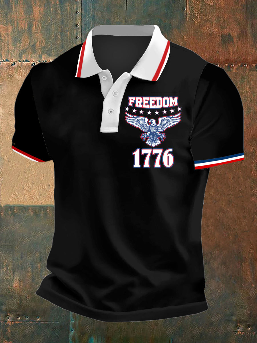 Men's American Freedom Print Polo Collar Casual Short Sleeved Shirt