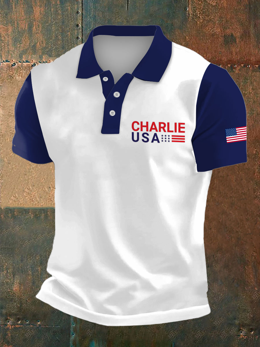 Men's Charlie Kirk Print Polo Collar Casual Short Sleeved Shirt