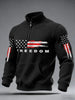 Men's Freedom USA Flag Print Casual Waffle Zipper Sweatshirt