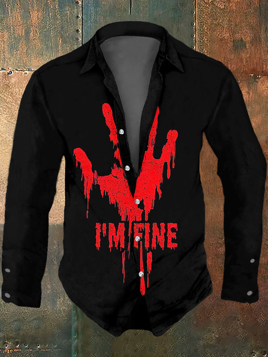 Men's Halloween Blood Palm Print Casual Long Sleeved Shirt