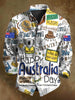 Men's Happy Australia Day Flag Print Casual Long Sleeve Pocket Shirt