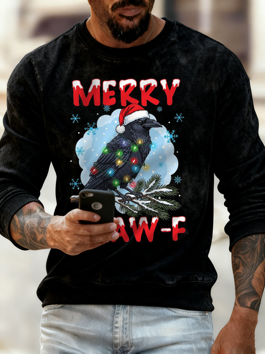 Men's Merry Christmas F-Caw-F Crow Print Crew Neck Sweatshirt