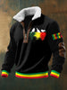 Men's Reggae Printed Long Sleeved Stand Up Collar Lambhair Zipper Top