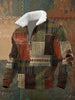 Men's Retro Patchwork Cable Pattern Print Fur Collar Zipper Sweatshirt