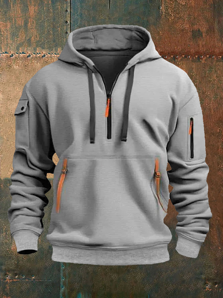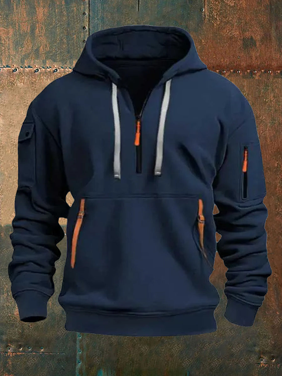 Men's Solid Color Pocket Plush Fleece Hoodie