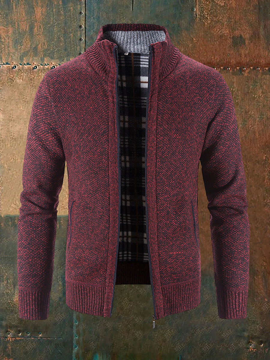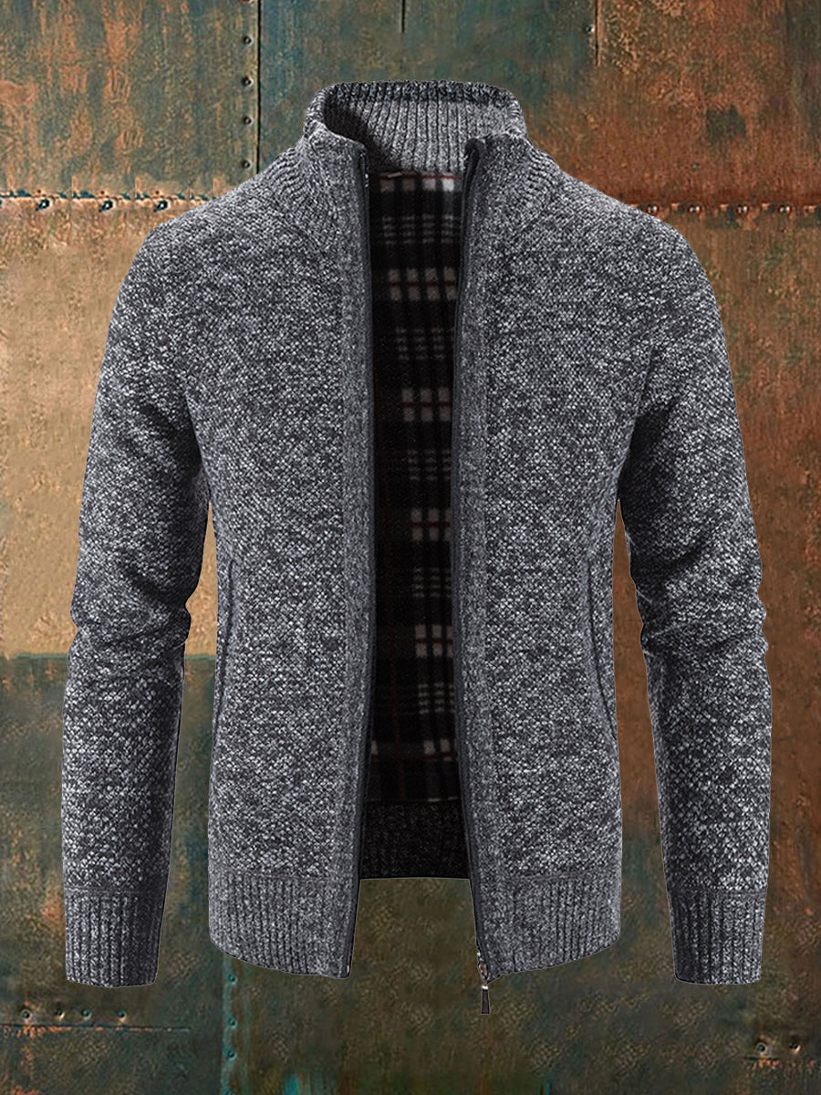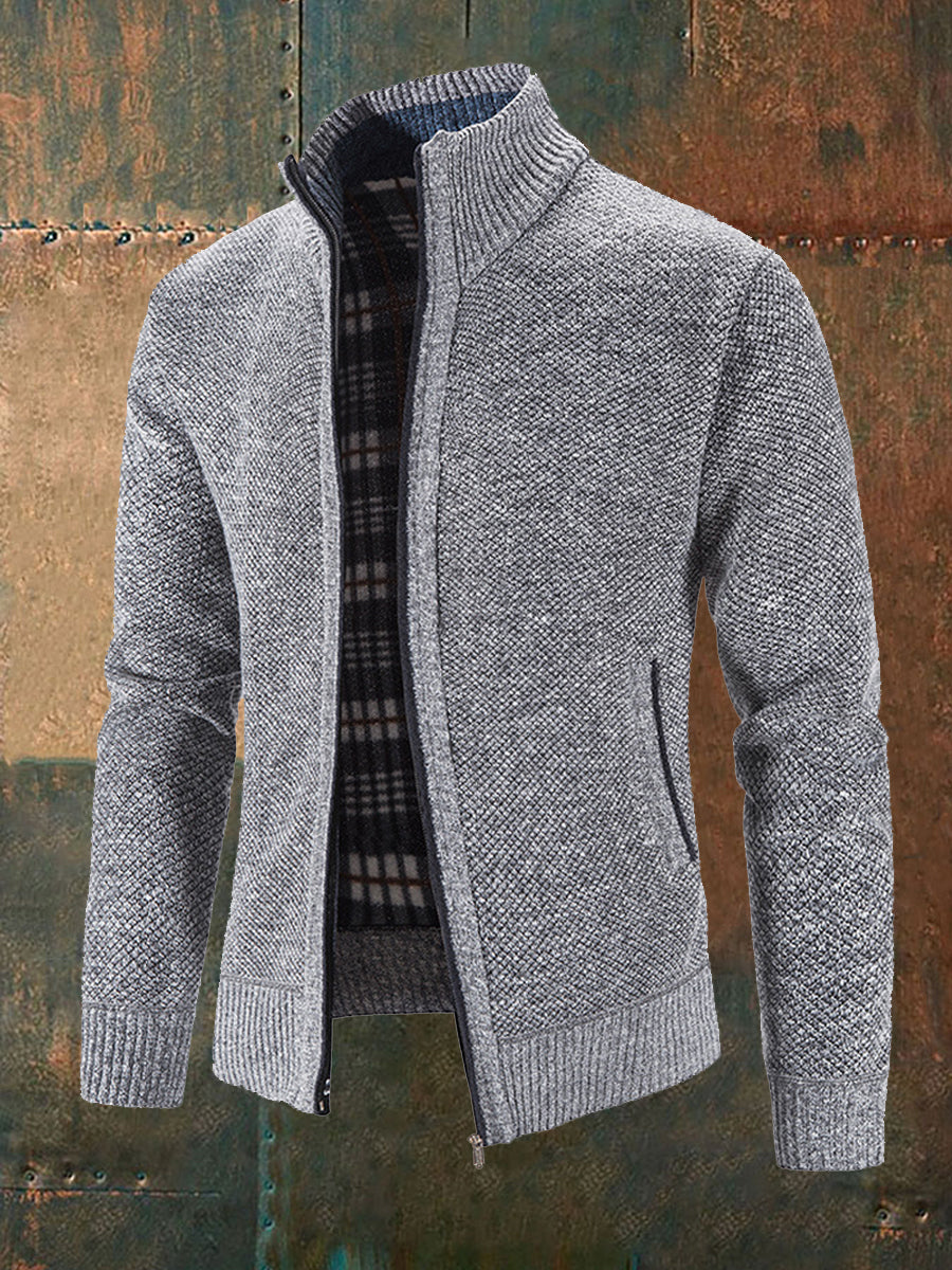 Men's Solid Color Zippered Knitted Cardigan Coat