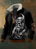 Men's Viking Warrior Skull Printed Long Sleeved Stand Up Collar Lambhair Zipper Top