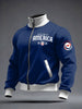 Men's US Printed long Sleeved Zipper Stand Up Collar Jacket
