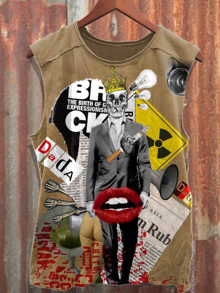 Retro Graffiti Skull Print Cotton Tank Top