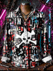 Retro Punk Halloween Colourful Graffiti Skull Abstract Print Casual Long Sleeve Shirt