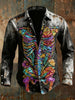 Retro Punk Halloween Sequined Multicolored Skull Skeleton Abstract Print Casual Long Sleeve Shirt