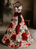 Retro Skull Floral Art Print V-Neck Sleeveless Cotton Maxi Dress