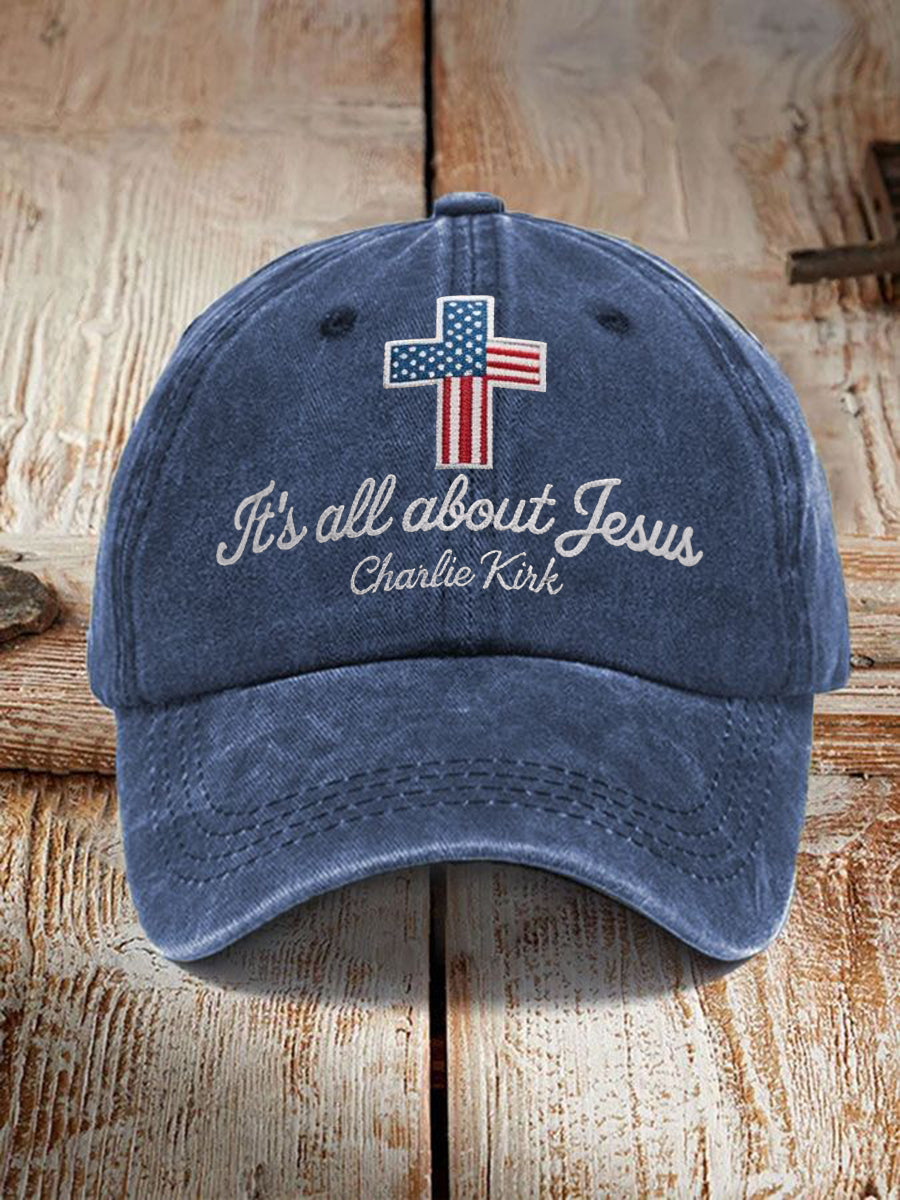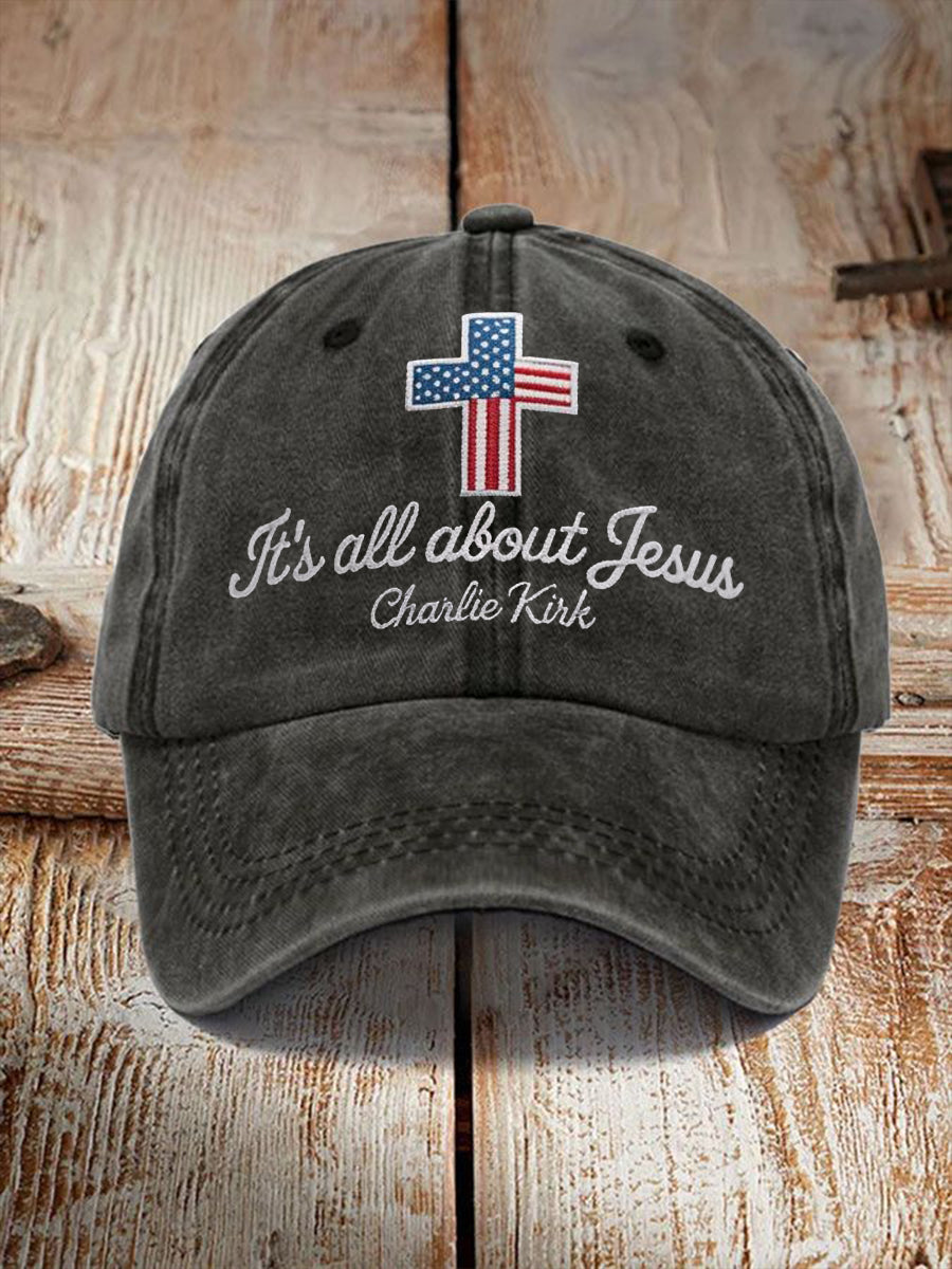 Unisex It's All About Jesus Charlie Kirk Cross Print Hat