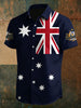 Vintage Australian Flag Badge Print Casual Cotton Short Sleeve Shirt