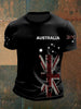 Vintage Australian Flag Badge Print Casual Cotton Short Sleeve T-Shirt