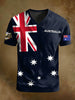 Vintage Australian Flag Badge Print Casual Cotton Short Sleeve V-Neck T-Shirt
