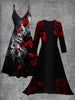 Vintage Floral Print Suspender Dress Two Piece Dress