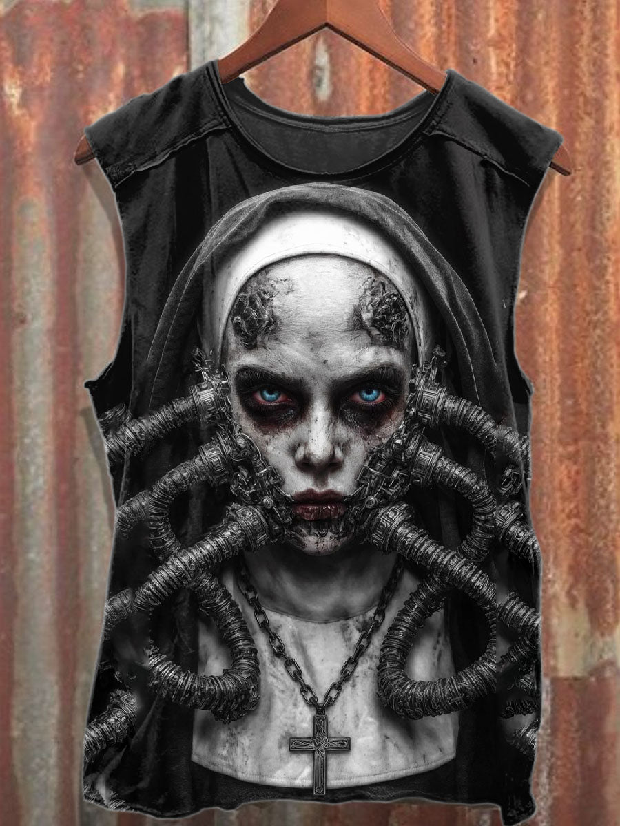 Vintage Nun Print Cotton Tank Top