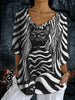 Women’s Black Cat Stripes Print Casual Half-Sleeve Top