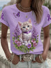 Women's Alzheimer's Awareness Purple Animals Print T-shirt