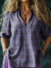 Women's Alzheimer's Awareness Purple Flower Printed Cotton Linen Long Sleeve Shirt