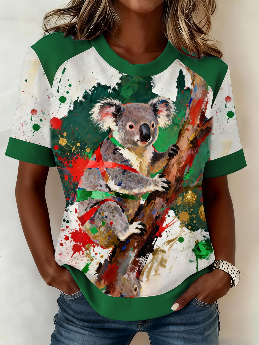 Women's AU Christmas Koala Art Printed T-shirt