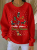 Women's Christmas Dachshund Christmas Tree Crew Neck Striped Sweatshirt