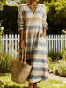Women's Elegant Striped Pattern Cozy V-Neck Dress