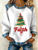 Women's Faith Christmas Tree Cross Denim Patchwork Top