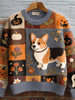 Women's Fall Inspired Corgi Dog Felt Art Cozy Knit Sweater