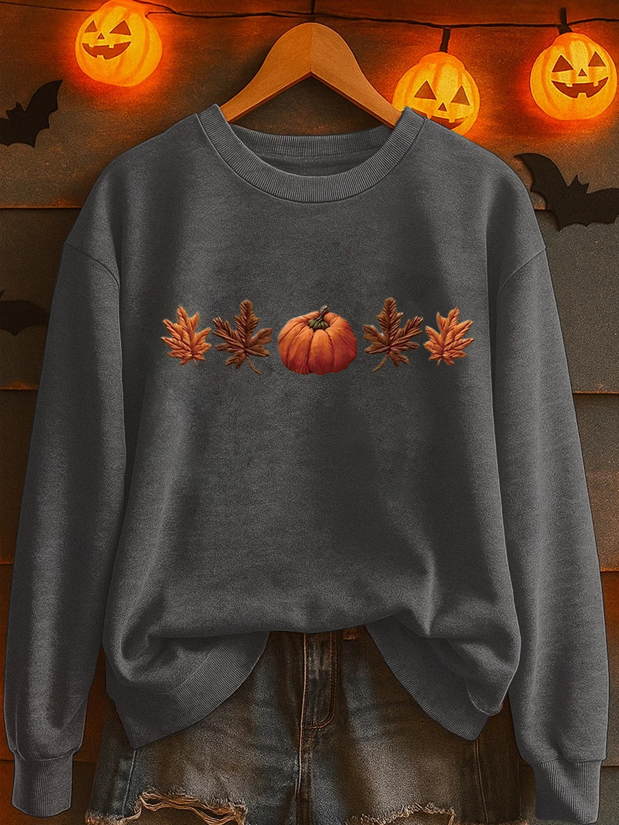 Women's Fall Pumpkin Print Casual Sweatshirt