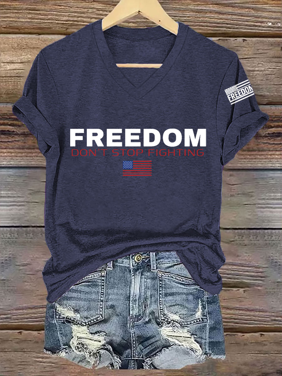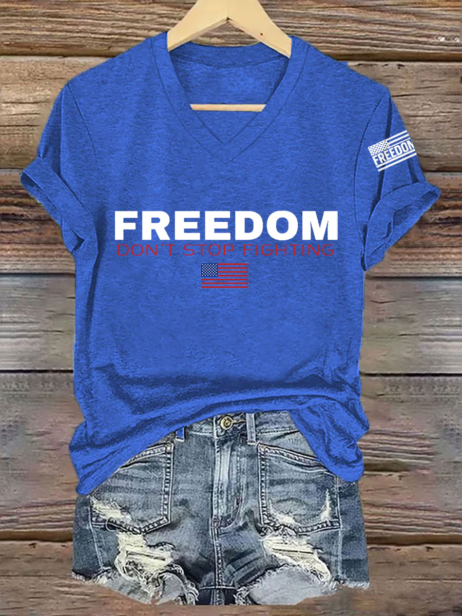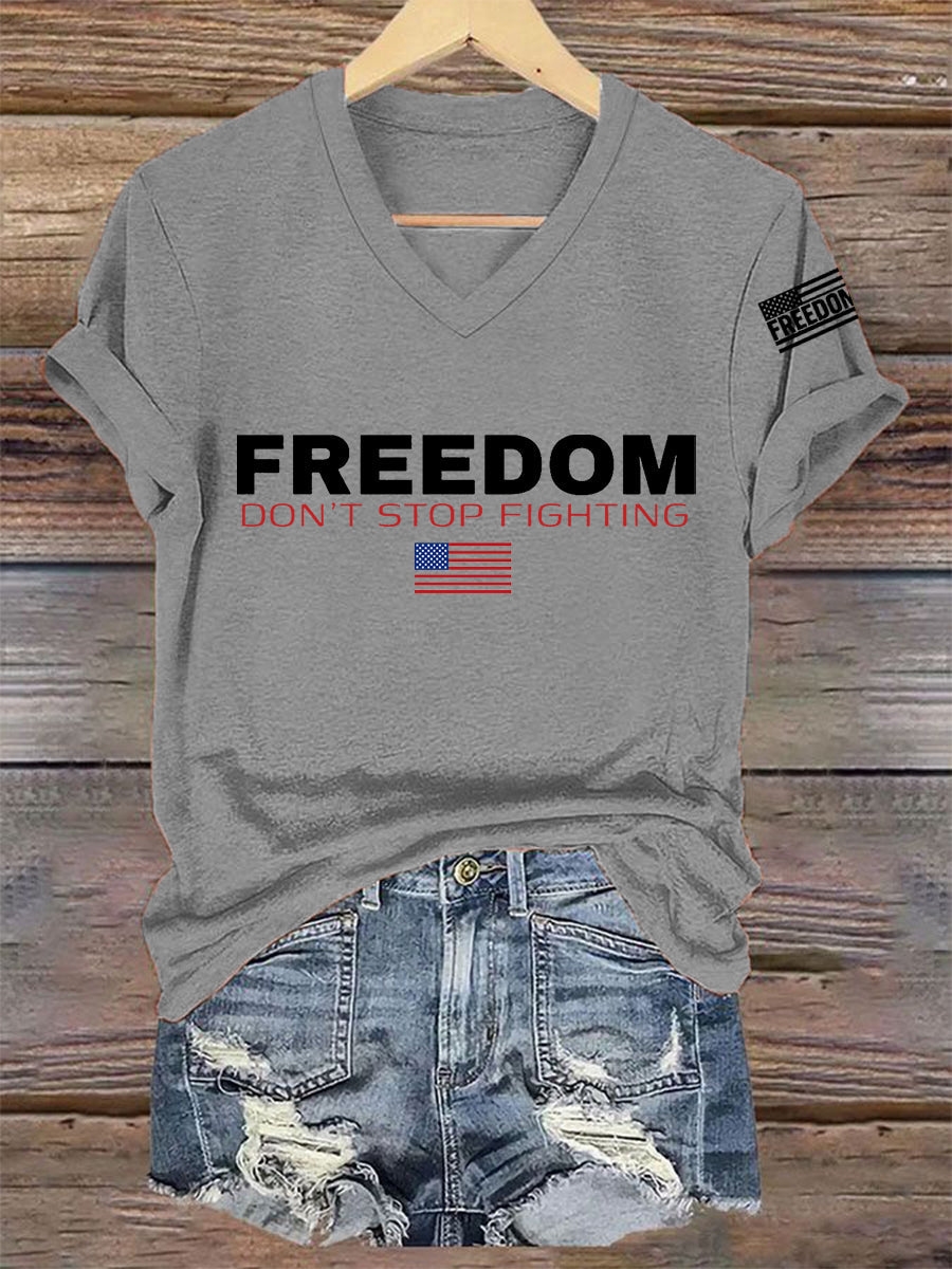Women's Freedom Don't s Top Fighting R.I.P Charlie Kirk V-Neck Tee