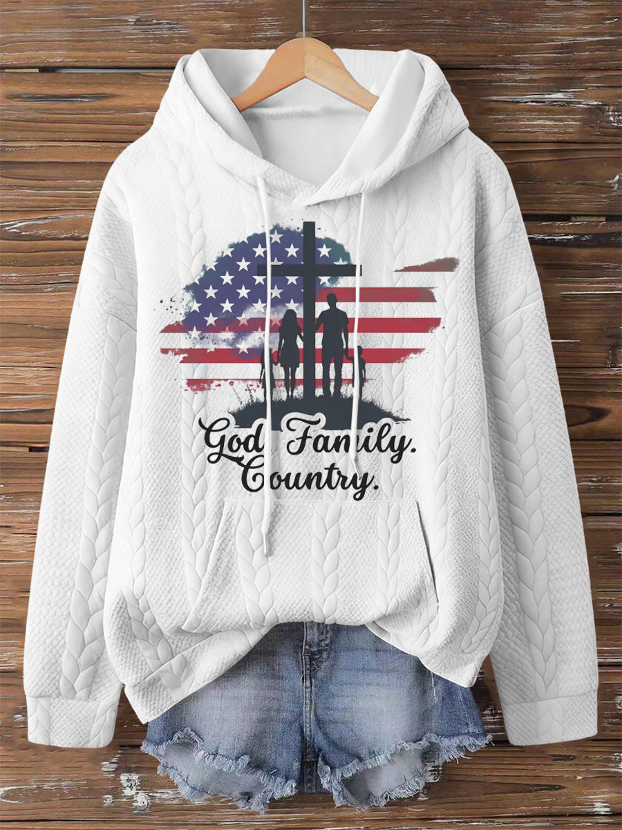 Women's God Family Country In That Order Charlie Kirk Print Hoodie