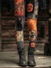 Women's Halloween Black Cat & Pumpkin Patchwork Art Leggings