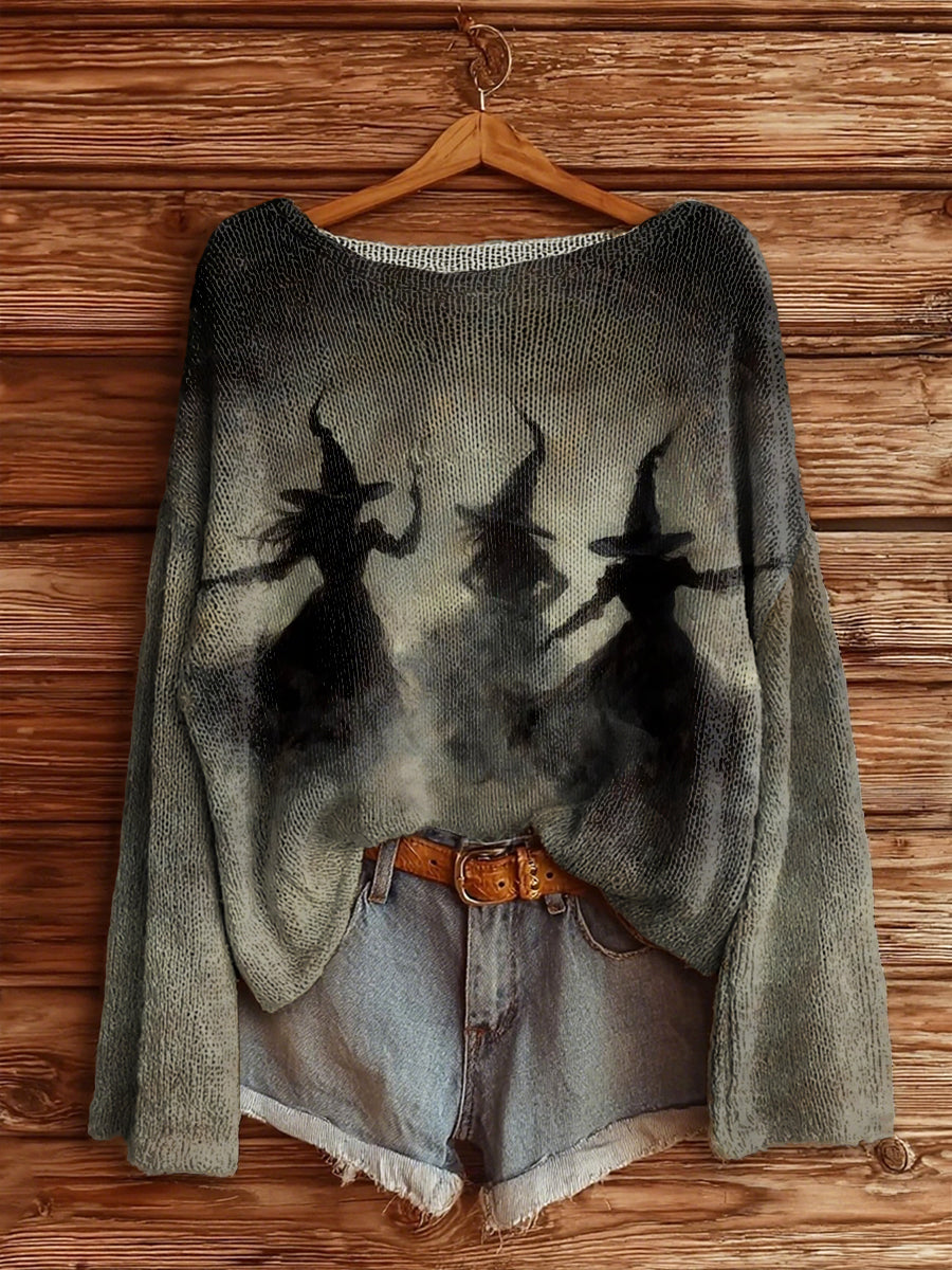 Women's Halloween Witch Long Sleeve Knit Sweater