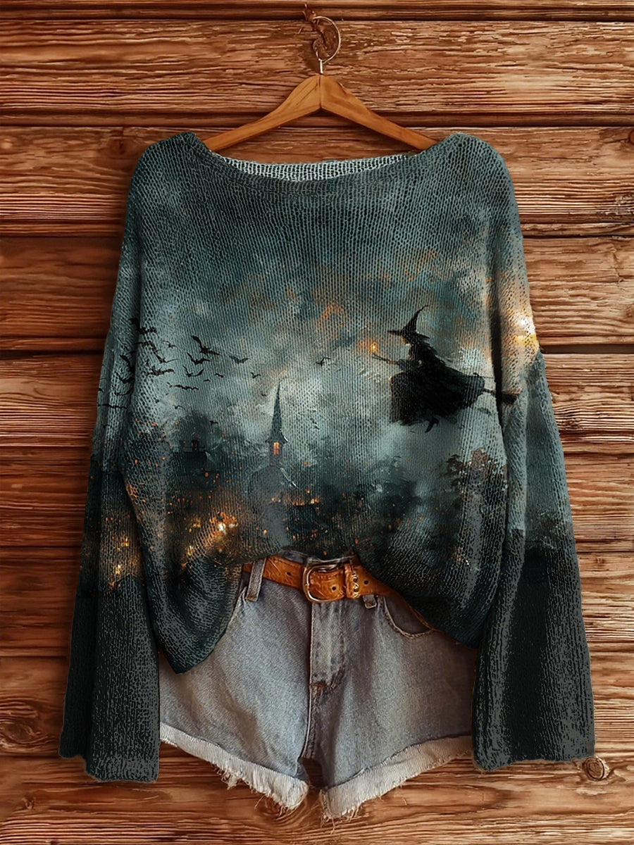 Women's Halloween Witch Long Sleeve Knit Sweater