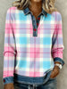 Women's Pink And Blue Plaid Print Denim Patchwork Top