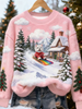 Women's Retro Animal Christmas Art Print Casual Flannel Top