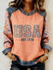 Women's USA Flower Printed Collar Long Sleeve Sweatshirt