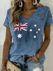 Women's Vintage Australian Flag Badge Art Print V-Neck Short Sleeve T-Shirt