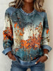 Women's Vintage Distressed Textured Print Denim Patchwork Sweatshirt