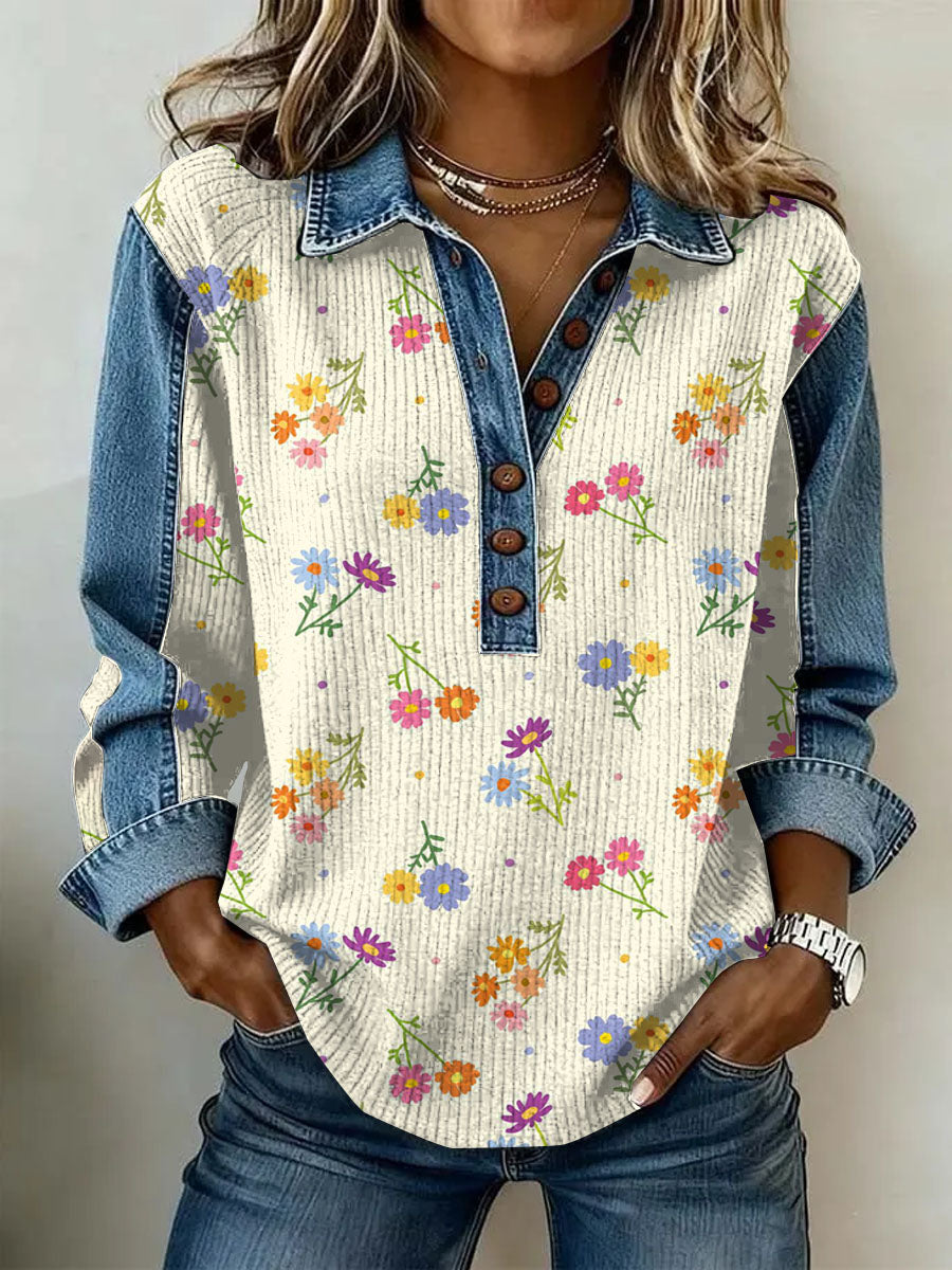 Women's Vintage Floral Print Casual Long-Sleeve Top