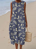 Women's Vintage Floral Print Linen Sleeveless Dress