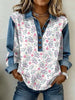 Women's Vintage Flowers Patchwork Print Casual Sweatshirt