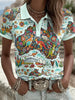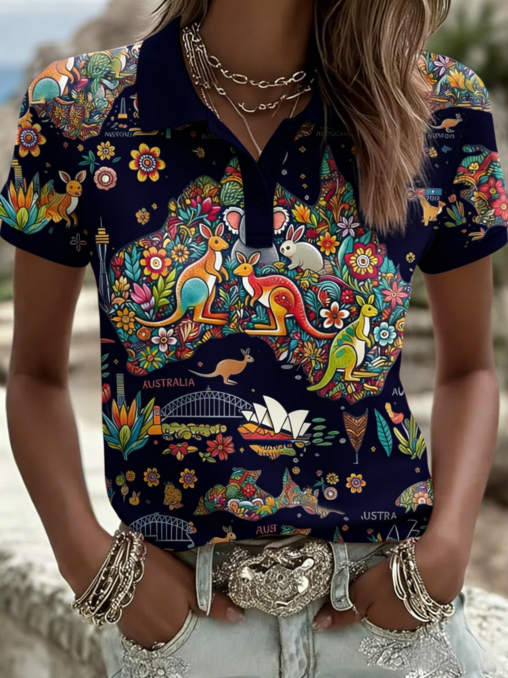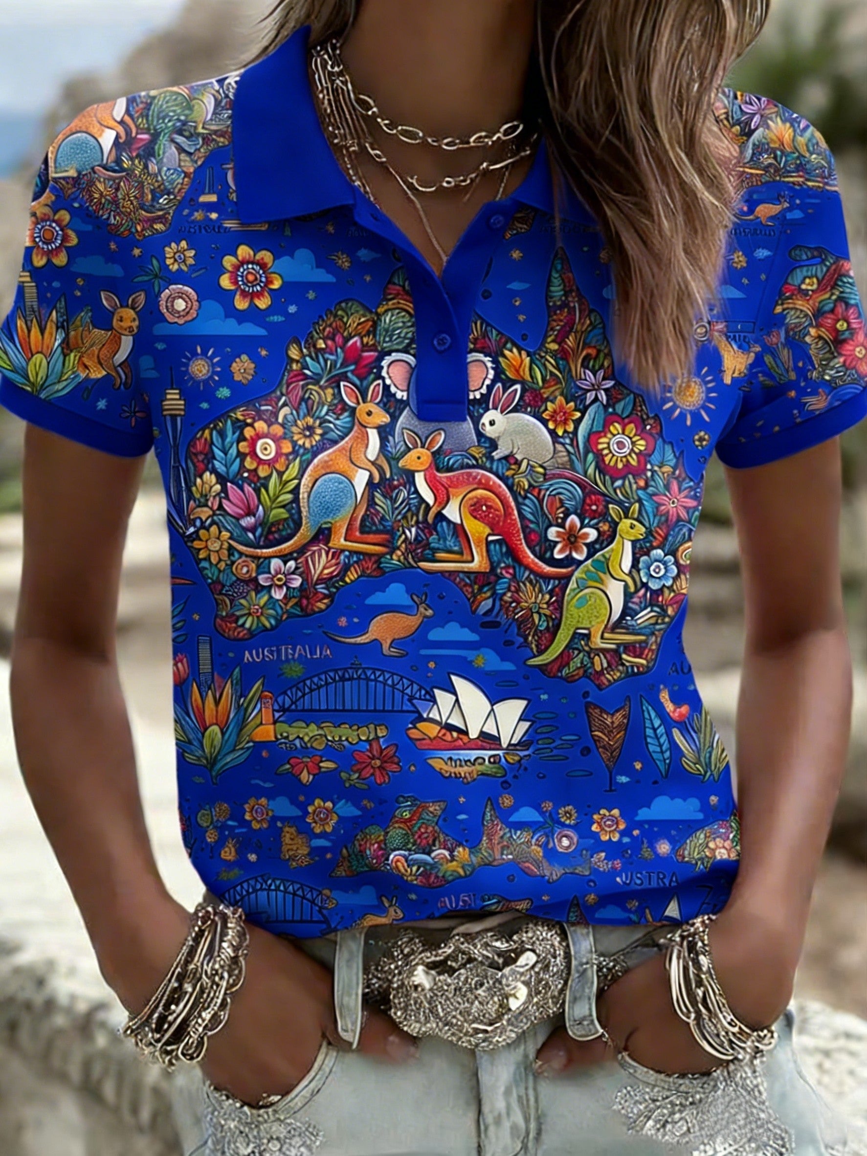 Women's Vintage Happy Australia Day Flag Badge Casual Print Short-Sleeve Polo Shirt