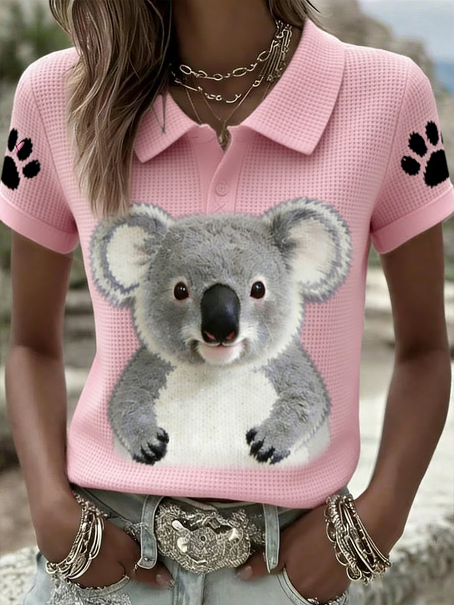 Women's Vintage Happy Australia Day Flag Badge Casual Print Short-Sleeve Polo Shirt