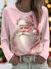 Women's Vintage Pink Christmas Santa Claus Print Casual Long Sleeve T-Shirt